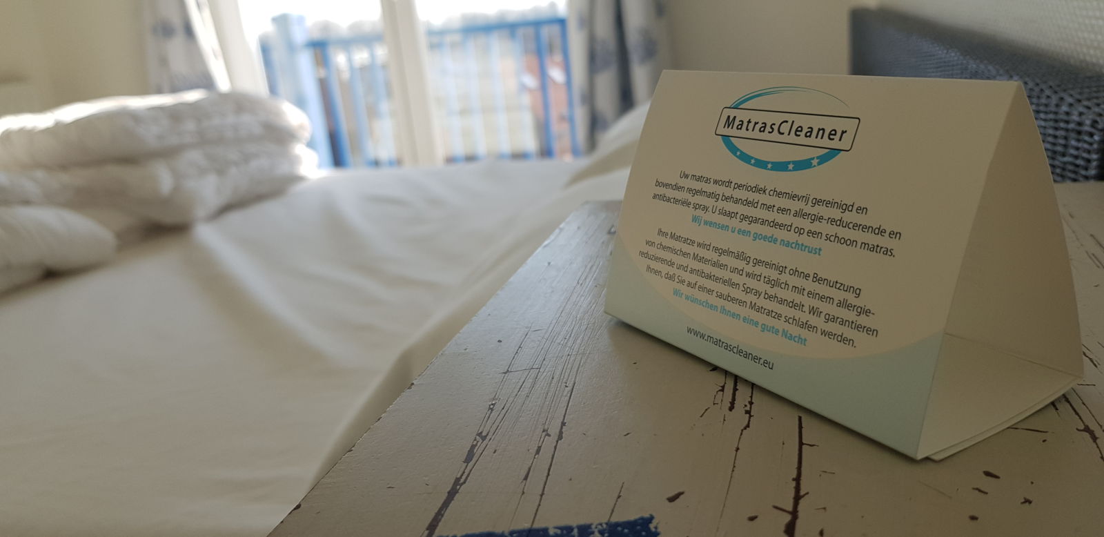 MatrasCleaner elimineert de oorzaak. Uw matras wordt droog en zonder het gebruik van chemicaliën gereinigd. Hierdoor kunt u korte tijd na het reinigen, binnen 1 uur, al weer gebruik maken van uw matras. De service wordt bij u aan huis verleend, uw matras kan dus gewoon blijven liggen.